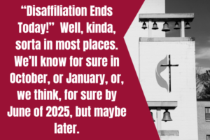 “Disaffiliation Ends Today!” Well, kinda, sorta in most places. We’ll know for sure in October, or January, or, we think, for sure by June of 2025, but maybe later.