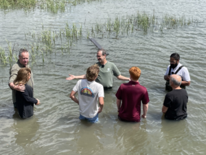 A year and a half later, we’ve baptized two dozen people (many in the nearby Skidaway River/ photo above); we average 220 in worship at our weekly 8:45am service; and every Sunday night welcome 50 children (2nd-5th grade) and students (middle and high school) back to the campus.