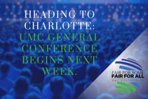 All eyes in the Methodist world are turning toward Charlotte, NC for the UMC General Conference that begins next week. But first, let me tell you about last week.