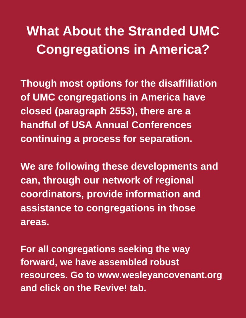 This AfricaNOW funding appeal is urgent for the next 4-6 months. After that point, it is anticipated that the WCA operations in the USA will largely wind down. Because of our continuing involvement in Africa and our commitment to provide resources for those congregations in the USA who may yet have opportunities into 2025 for leaving the UMC, the WCA will maintain a governance and corporate structure adequate to satisfy all legal requirements as well as maintain digital resources.