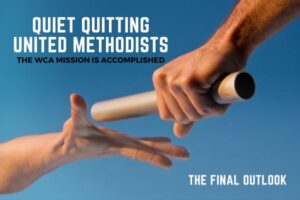 Among the emails with energetic stories of new churches starting, I also received an email from a couple that are part of Quiet Quitting United Methodists. Quiet Quitting United Methodists don’t demand or demean. They don’t stir up trouble or undermine the pastor. Why would they? The Quiet Quitters love the people of their congregation. They have been members and leaders in their local church, perhaps for decades. Finally, however, they have come to the decision that they can no longer in good conscience support the local church with their prayers, presence, gifts, service, and witness. They quietly walked away.