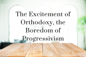As Trevin Wax pointed out in his book, The Thrill of Orthodoxy, “The problem with this [progressive] mindset is that it puts the world in the driver’s seat and stuffs orthodoxy in the trunk. Christians are along for someone else’s ride, and our beliefs are baggage. Such a strategy gives the world a veto over our confession of faith and the power over what we will or will not say.” It all gets very boring.